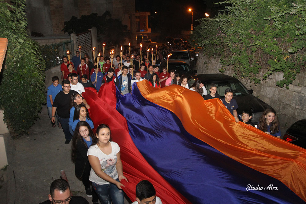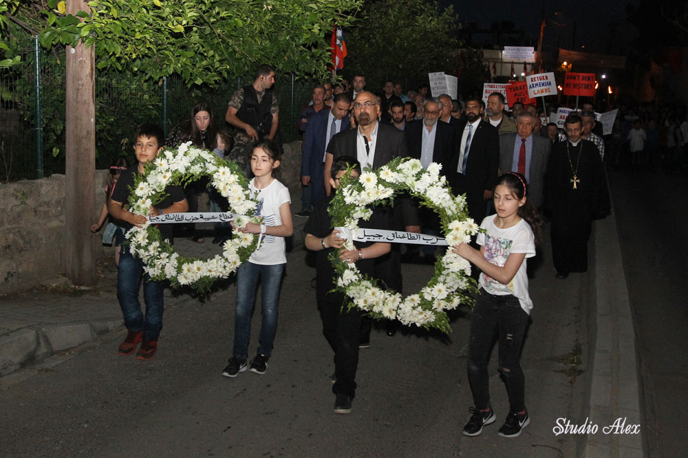 Ոգեկոչման ձեռնարկը սկսաւ ՀՅԴ Ժիպէյլի ակումբէն սկիզբ առած քայլարշաւով մը, որ կազմակերպուած էր ՀՅԴ ԼԵՄ-ի «Արարատ» կորիզին կողմէ: Հսկայ Եռագոյնը, ջահերը, ինչպէս նաեւ Ցեղասպանութիւնն ու Թուրքիան դատապարտող, հատուցում պահանջող եւ պահանջատէրի ուխտը վերանորոգող գրութեամբ ցուցանակները կրող ՀՅԴ «Ա. Ջամալեան» պատանեկան միութեան անդամներն ու ձեռնարկին իրենց մասնակցութիւնը բերող ներկաները հետեւեցան ՀՄԸՄ-ի շեփորախումբին առաջնորդած երթին: