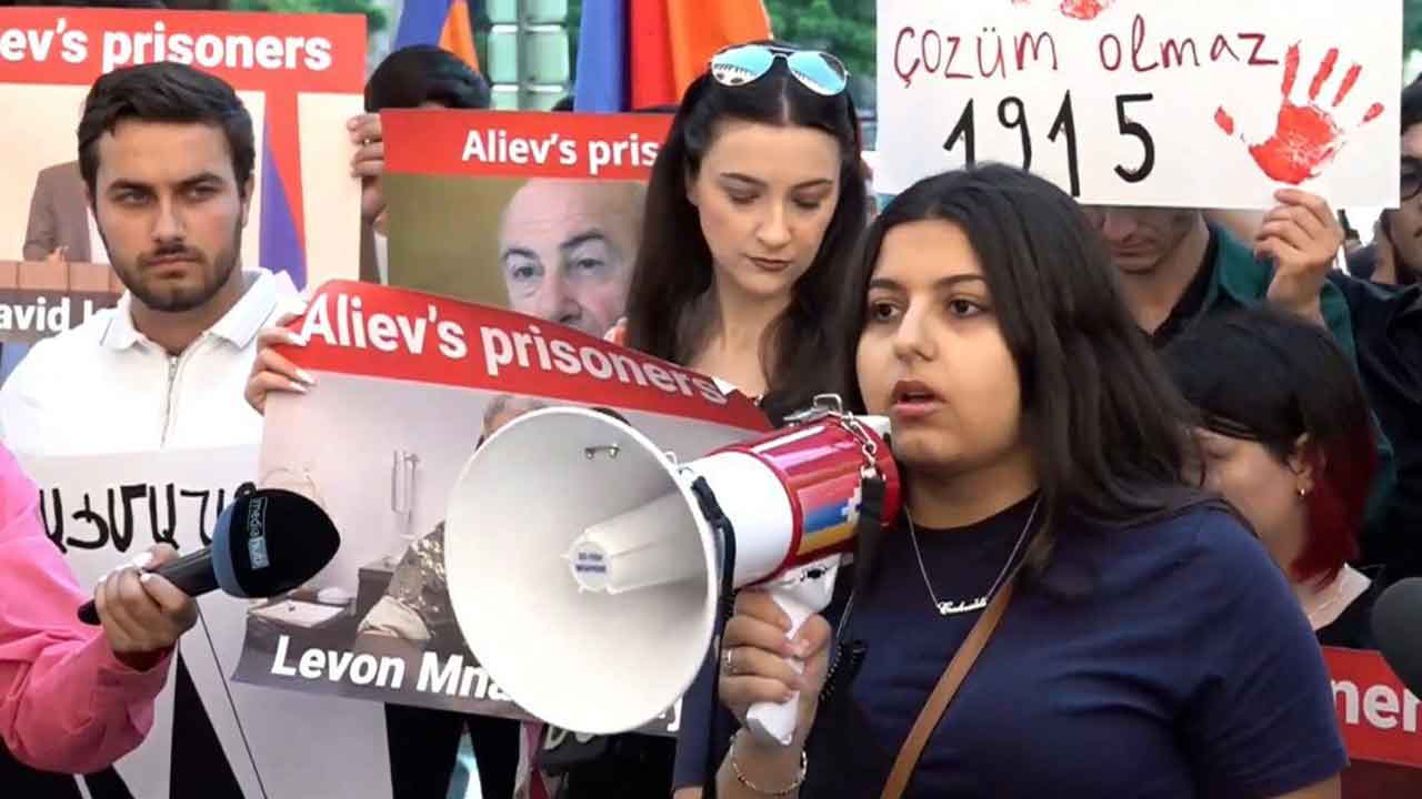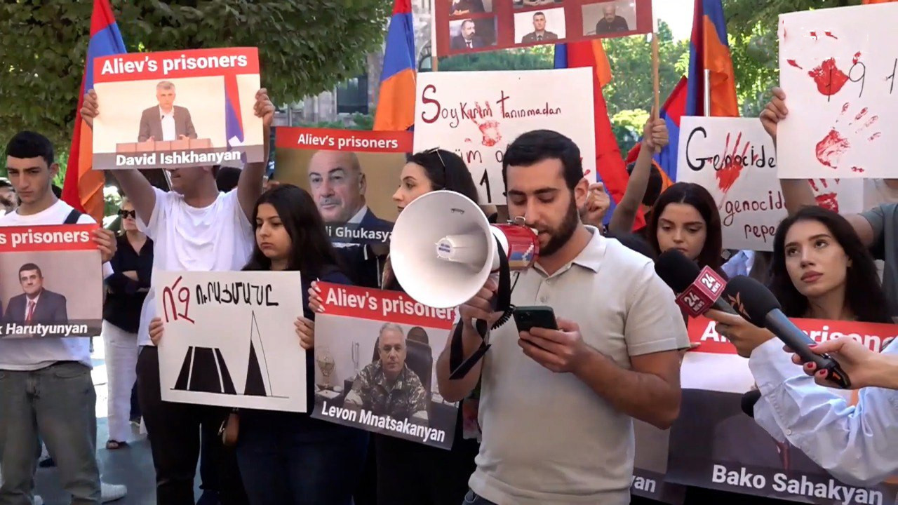 Երիտասարդները բարձրացուցին Պաքուի բանտերուն մէջ ապօրինաբար պահուող Արցախի ռազմաքաղաքական ղեկավարութեան նկարները, «Ո՛չ ուրացման» գրութեամբ պաստառներ: Մասնակիցները յայտարարութիւններ կատարեցին հայերէն եւ անգլերէն լեզուներով: