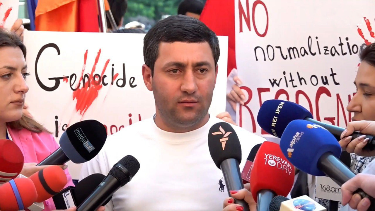 Ան շեշտեց, որ ասոր վառ ապացոյցը Հայաստանի կառավարութեան կողմէ այցելութեան ժամանակացոյցն ու օրակարգը գաղտնի պահելն է: «Մենք հոս ենք ըսելու, որ դէմ ենք ուրացման քաղաքականութեան», աւելցուց ան:
