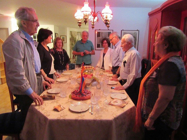 Հեռաձայնը կը հնչէ: Տոքթ. Հարպոյեանն է: Մեզ ընթրիքի կը հրաւիրէ: Ներկայ են Վրէժ֊Արմէնը, տոքթ. Վազգէն Տէր Գալուստեանը, Յակոբ Մանճիկեանը` իրենց կիներով: Կը բացակայէին Ժան եւ Արտեմիս Մկրտիչեանները, որոնք Հայաստան մեկնած են անկախութեան 25-ամեակին ներկայ ըլլալու: