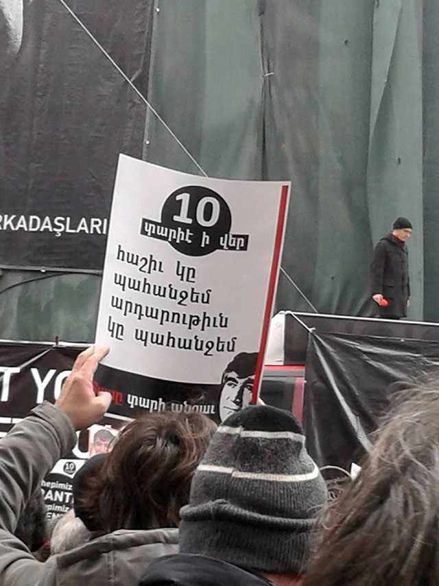 Այսօր ձեզի հետ տասը տարի առաջ սպաննուած ամուսինիս ցաւը կիսելը, իր դատին մասին խօսիլը, հաւատացէ՛ք, շա՛տ կը ցաւցնէ: Սակայն երկրի ժողովրդավարացման համար, ժողովուրդի՛ն համար այս դատը եւս կարեւոր դատերէն մէկն է: