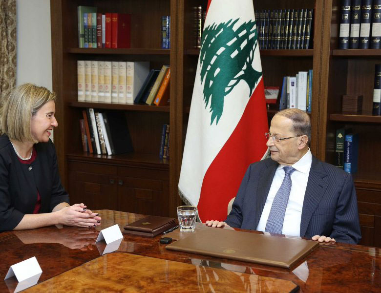 Նախագահ Աուն Լիբանանի անունով շնորհակալութիւն յայտնեց Մոկերինիի` Եւրոպական Միութեան տրամադրած օժանդակութիւններուն համար` յոյս յայտնելով, որ Եւրոպական Միութիւնը կը շարունակէ տնտեսական եւ բարգաւաճման մարզերուն մէջ օժանդակել Լիբանանին: