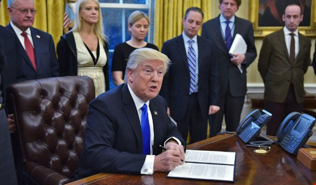 Միւս կողմէ, Թրամփ ուրբաթ օր ստորագրեց հրամանագիր մը, որ 90 օրով կ՛արգիլէ Իրանէն, Իրաքէն, Լիպիայէն, Սոմալիէն, Սուտանէն, Սուրիայէն եւ Եմէնէն քաղաքացիներու Միացեալ Նահանգներ մուտքը: Հրամանագիրի հրապարակման ժամանակ արդէն դէպի Միացեալ Նահանգներ թռիչք կը կատարէին եւ նոյնիսկ մուտքի արտօնագիրներ ու գաղթի այլ փաստաթուղթեր ունէին անձեր, որոնք ամերիկեան հողամաս հասնելէ ետք ձերբակալուեցան: «Պի.Պի.Սի.» կը նշէ, որ շուրջ 100-200 անձեր արգելափակուած են օդակայաններու մէջ:
