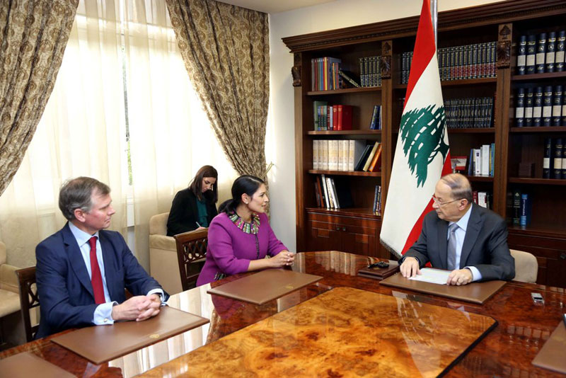 Հանդիպումին ընթացքին նախագահ Աուն շեշտեց, որ Լիբանան կը մաղթէ Բրիտանիոյ օժանդակութիւնը` սուրիացի գաղթականներու թղթածրարը լուծելու իմաստով: