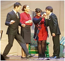 Սպանացի «եղբայրներու» ելոյթը ներկայացման միակ գունագեղ մասն էր: Դերակատարները ցուցաբերեցին խելացի խաղարկութիւն` արտայայտելու համար իրարմէ տարբեր մշակոյթներու միջեւ հաղորդակցութեան դժուարութիւնը: Հեսուս Ֆլորայի արական տարբերակն էր: Նոյնիսկ կը խորշէր իրեն շատ մօտեցող կիներէ: Ակնյայտ է, որ Մայքըլ Գուտուզեան կը տիրապետէ իր մարմինին: Նիլ Սայմըն խաղաց այնպէս, ինչպէս հարկ է: Մանուէլ Թոքմաճեան ցուցաբերեց իր ամենայաջող կերպարը: Կարողացաւ ունենալ բեմական ներկայութիւն: Հարկ էր սակայն, որ շարժուձեւերը ըլլային նուազ ցուցադրական: Այսուհանդերձ, այդ կարելի էր վերագրել իր առոյգ, կեանքը սիրող կերպարին: Շա՛տ բարի: