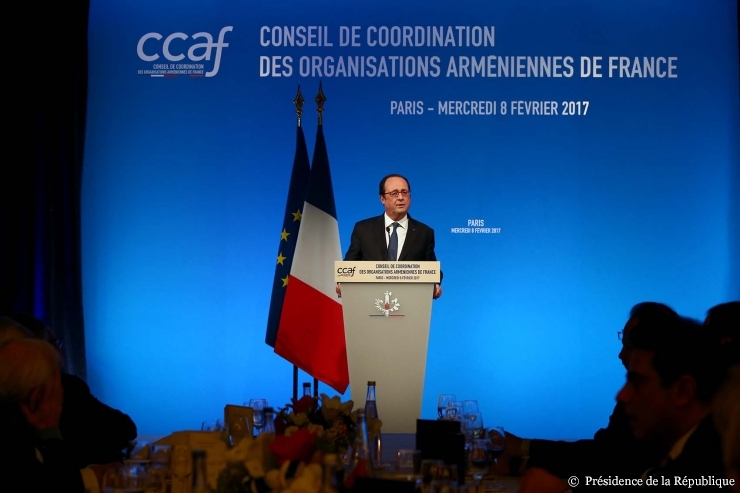 Չորեքշաբթի, 8 փետրուարի երեկոյեան Փարիզի մէջ տեղի ունեցաւ Ֆրանսայի հայկական կազմակերպութիւններու համակարգող խորհուրդի 4-րդ տարեկան ընթրիքը, որուն ներկայ գտնուած են Ֆրանսայի Հանրապետութեան նախագահ Ֆրանսուա Հոլլանտ, Ֆրանսայի պետական նախարարներ, շրջանային եւ քաղաքական բազմաթիւ անձնաւորութիւններ, իրաւաբաններ, յայտնի լրագրողներ եւ արուեստագէտներ: Քաղաքական բարձրաստիճան դէմքերէն յիշենք հանրապետութեան նախագահութեան ընկերվարականներու թեկնածու Պենուա Ամոն, Եւրոպական հարցերու պետական քարտուղար Հարլեմ Տեզիր, Փարիզի քաղաքապետ Անն Հիտալկօ, Փարիզի Շրջանային խորհուրդի նախագահ Վալերի Փեքրես, Հօ-տը-Սենի Նահանգային խորհուրդի նախագահ Փաթրիք Տէվէճեան, Լիւք Քարվունաս, Ֆիլիփ Քալթընպախ, Ֆրանսուա Ռոշպլուան, Վալերի Պուայէ, Ռընէ Ռուքէ… Հոն էին նաեւ արուեստի աշխարհի հանրածանօթ մեծ թիւով անձնաւորութիւններ, ինչպէս Շարլ Ազնաւուր, Անտրէ Մանուկեան, Ռոպեր Քէշիշեան, Լիզ Սարեան եւ այլք:
