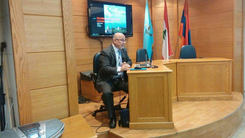 Ան խօսեցաւ նաեւ նորագոյն շրջանի ճարտարապետութեան մասին` սփիւռքի տարածքին եւ Լիբանանի մէջ: Դասախօսը ըսաւ, որ նոր շրջանը կը բնորոշուի կառուցուածքային որոշակի փոփոխութիւններով, շինանիւթերու եւ արհեստագիտութեան կիրարկումներով եւ մանաւանդ` ճարտարապետական ազգային աւանդոյթներու պահպանումով: