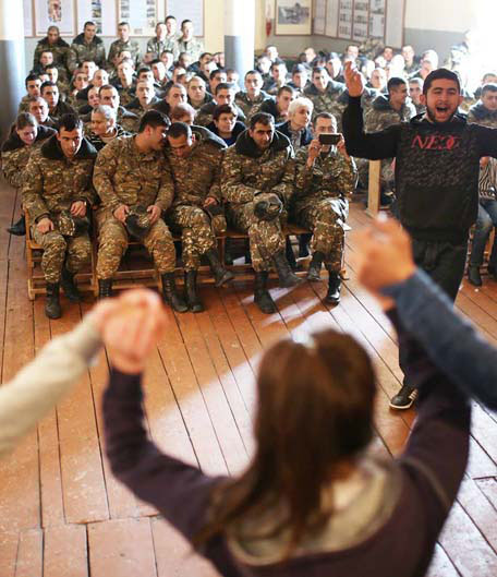 Կիթառի հնչիւնները զինուորներին տարան դէպի հայրենական տուն, մայրական գիրկ, իսկ երեխաների հայրենասիրական բանաստեղծութիւնները նրանց աւելի քաջ ու զգօն դարձրին: Անսպասելի անակնկալ ունեցանք: Զինուորների մէջ երկուսը քաջ գտնուեցին եւ մեր տղաների հետ պարեցին «Եարխուշտա» պարը: Այս պարը մեր նախնիները պարում էին պատերազմ գնալուց առաջ, այն քաջութեան ու խիզախութեան խորհուրդ ունի: Եւ վերջում զինուորների հետ նստեցինք` ճաշակելու Տեառնընդառաջին նուիրուած սիրոյ կերակուրը, որը կոչւում է «ագապէ»: Թող որ Տեառնընդառաջը մեր աշխարհին խաղաղութիւն բերի: