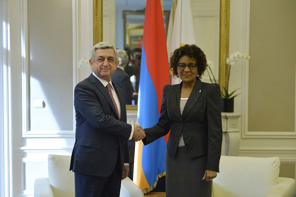 Ֆրանսա այցելութեան ծիրին մէջ նախագահ Սերժ Սարգսեան երէկ Ֆրանսախօս երկիրներու միջազգային կազմակերպութեան կեդրոնին մէջ հանդիպում ունեցած է կազմակերպութեան ընդհանուր քարտուղար Միքայէլ Ժանին հետ: