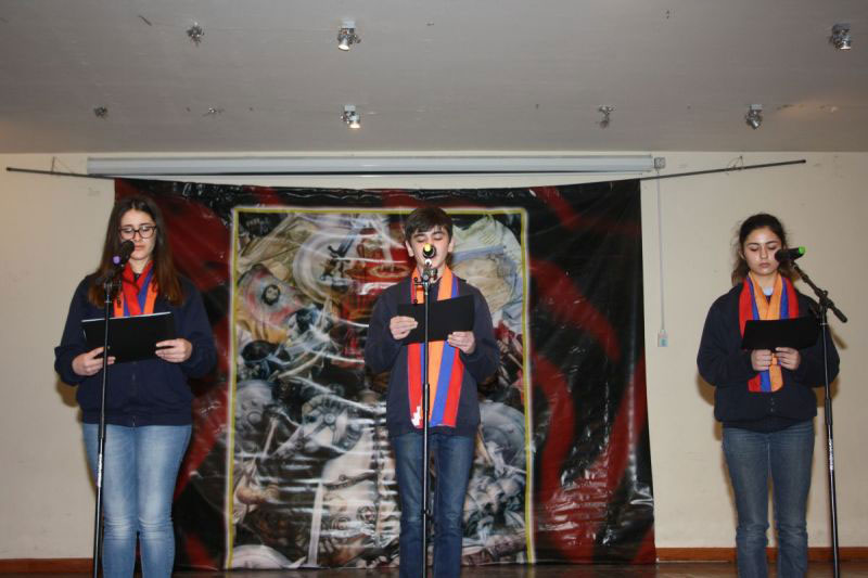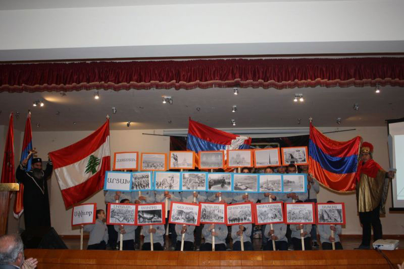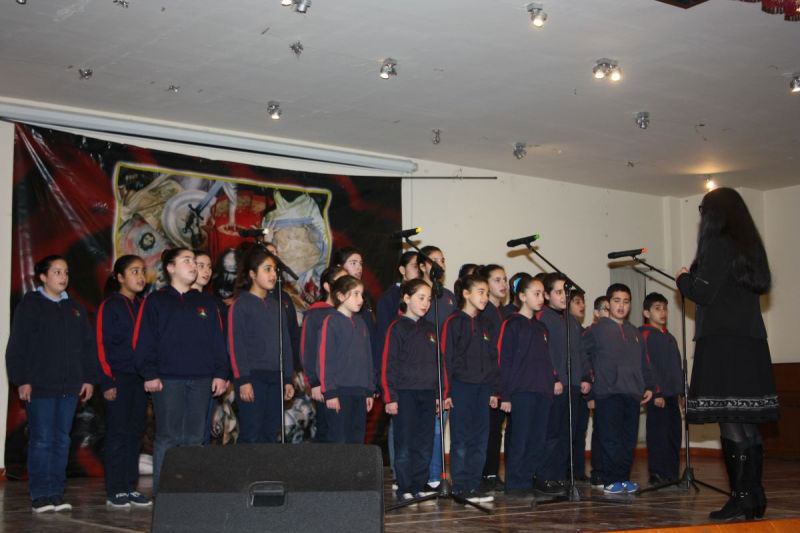 Ապա բեմ բարձրացան Հայ կաթողիկէ քոյրերու վարժարանի աշակերտները, որոնք կենդանի պատկերով մը ներկայացուցին օրուան խորհուրդը, որուն յաջորդեց Հայ աւետարանական երկրորդական վարժարանի աշակերտական երգչախումբը: