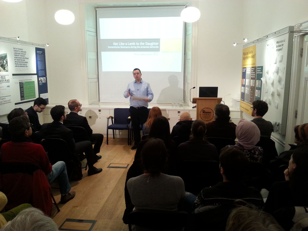 Յետոյ, դոկտ. Մուրատեան քննարկեց Հալէպի «Օթել Պարոն»-ի պարագան: Ըստ որոշ վկայութիւններու, Միջին Արեւելքի ամենահինը համարուող այս պանդոկը հիմնուած էր Մազլումեան եղբայրներուն կողմէ եւ ունեցած` հռչակաւոր հիւրերու շարք մը, ինչպէս` Շարլ տը Կոլ եւ Ակաթա Քրիսթի: Սակայն, յաճախորդներու իմաստով ուղենիշ հաստատութիւն մը ըլլալէ անդին, ան նաեւ հայոց մարդասիրական դիմադրութեան ջանքերուն բանալի դեր մը ունեցաւ: Մազլումեան եղբայրները լաւ յարաբերութիւններ կը պահէին հոն իջեւանող օսմանեան պաշտօնատարներու հետ, ինչ որ ազատութիւն կ՛ընձեռէր հայ գաղթականներու տեղադրութեան օժանդակելու: Պանդոկին հետ կապուած հետաքրքրական պատմութիւններէն կը յիշուի խումբ մը հայ մանուկներու պարագան, որոնք պանդոկի աղբամանը ապրուստի միջոց կարողացած էին դարձնել` ապահովելով ուրիշ մարդոց մնացորդ ուտելիքները: Այս պատմութիւնը ցոյց կու տայ մանուկներու դերը մարդասիրական դիմադրութեան մէջ. անոնք վերապրելու ջանք թափած էին` հակառակ դժնդակ կացութեան: Ցարդ չպատմուած նման պատմութիւններ դժուարաւ իրենց ճիշդ տեղը կը գտնեն` տրուած ըլլալով դերակատարներուն լուսանցքային վիճակը, բայց եւ այնպէս նուազ կարեւոր չեն Հայոց ցեղասպանութեան ընդհանուր պատմութեան համար ու նաեւ լոյս կը սփռեն քիչ կամ ո՛չ մէկ ուշադրութեան արժանացած մարդոց եւ խմբաւորումներու դերին վրայ: