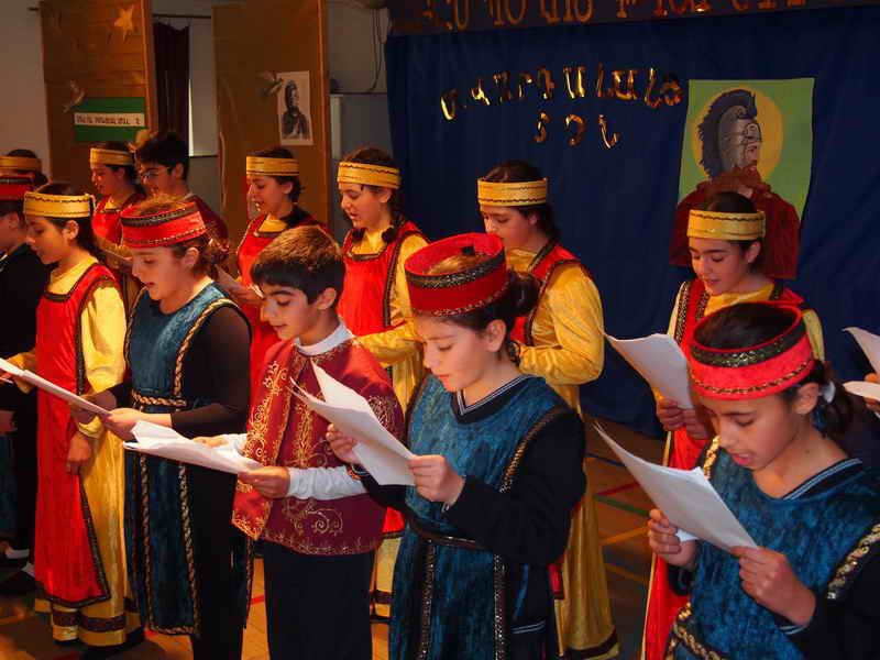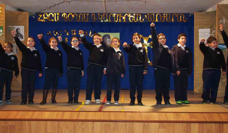 Ապա բեմ բարձրացան Ա. կարգի աշակերտները, որոնք Վարդան Մամիկոնեանի նկարը կրող ոսկեգոյն թագերով եւ հայու վայել յոխորտ կեցուածքով արտասանեցին «Քաջ Վարդան Մամիկոնեան»-ը: Բ. դասարանի աշակերտները, նոյնպէս թագերով բարձրացան բեմ եւ արտասանեցին «Տօն Վարդանանց» ու երգեցին «Իմ հայրենեաց» երգը: Գ. կարգի աշակերտները արտասանեցին «Վարդանանք»-ը: Դ. դասարանի աշակերտները «Հայոց պատմութեան դասը» խորագիրով թատերական ներկայացումով մը արտայայտեցին իրենց սէրը մայրենի լեզուի եւ հայոց պատմութեան դասերուն, բայց մանաւանդ հայոց պատմութեան դասերէն Վարդանանց պատերազմին նկատմամբ, եւ ուխտեցին միշտ վառ պահել Ղեւոնդ Երէցի, Վարդան Մամիկոնեանի եւ իր ընկերներուն յիշատակը, հետեւիլ անոնց օրինակին, տէր կանգնիլ մայրենի լեզուին, ազգին ու պաշտպանել հայրենիքը: