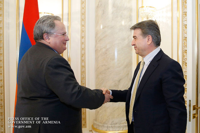 Հայաստանի վարչապետ Կարէն Կարապետեան 9 մարտին ընդունած է Յունաստանի արտաքին գործոց նախարար Նիքոս Քոցիասին գլխաւորած պատուիրակութիւնը: