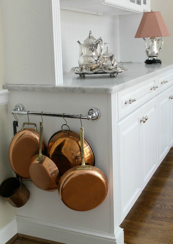 3.- Խոհանոցին մէջ, դարձեալ դրան ետեւ, կամ պահարանին կողմը հաստատուած ձողէն կարելի է կախել տեղ գրաւող տապակներն ու սաները: