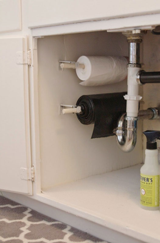 7.- Խոհանոցի լուացարանին տակի պահարանին մէջ հաստատուած ձողին վրայ կարելի է անցընել աղբի կերպընկալ տոպրակներու փաթթոցը: