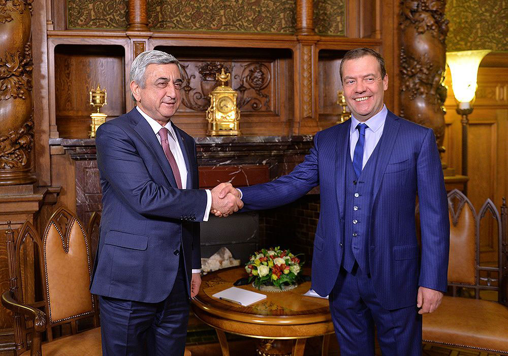 Ռուսիոյ կատարած այցելութեան ծիրին մէջ Հայաստանի նախագահը հանդիպում ունեցած է նաեւ Ռուսիոյ վարչապետ Տմիթրի Մետվետեւին հետ: Անոնք անդրադարձած են ռազմավարական գործընկեր երկու պետութիւններուն միջեւ բոլոր ուղղութիւններով առկայ փոխգործակցութեան ընթացքին, ամփոփած են ցարդ իրականացուած աշխատանքներուն արդիւնքներն ու քննարկած առեւտրական, տնտեսական համագործակցութեան ընդլայնման կարելիութիւնները: