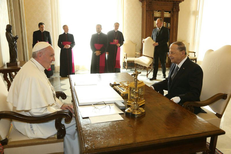 Հանրապետութեան նախագահ զօր. Միշել Աուն երէկ Վատիկանի մէջ հանդիպում մը ունեցաւ Ֆրանչիսկոս պապին հետ: