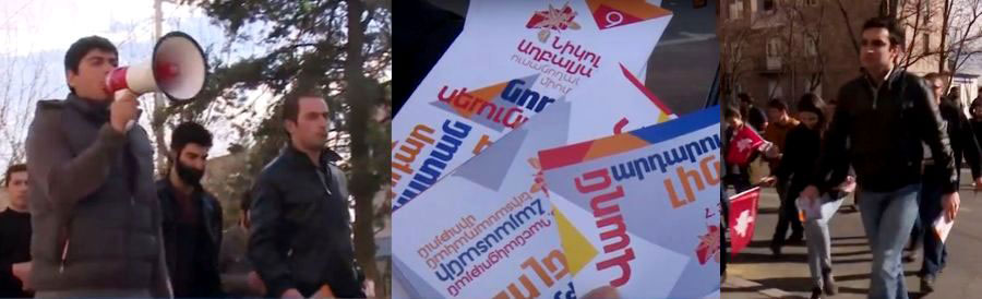 Այս կոչերով Դաշնակցութեան «Նիկոլ Աղբալեան» ուսանողական եւ երիտասարդական միութիւններու անդամները քարոզչական հերթական ծրագիր իրականացուցին` քայլերթի տեսքով: Երթը սկսաւ ՀՅԴ «Արամ Մանուկեան» երիտասարդական կեդրոնէն եւ վերջ գտաւ Աջափնեակի մէջ: Կազմակերպիչներուն կարծիքով, այս եղանակով իրականացած բակային հանդիպումները աւելի արդիւնաւէտ են, քանի որ այսպիսով կրնան քաղաքացիներուն հետ աւելի անմիջական կապի մէջ մտնել` ծանօթացնելով կուսակցութեան ծրագրային ընդհանուր դրոյթները: