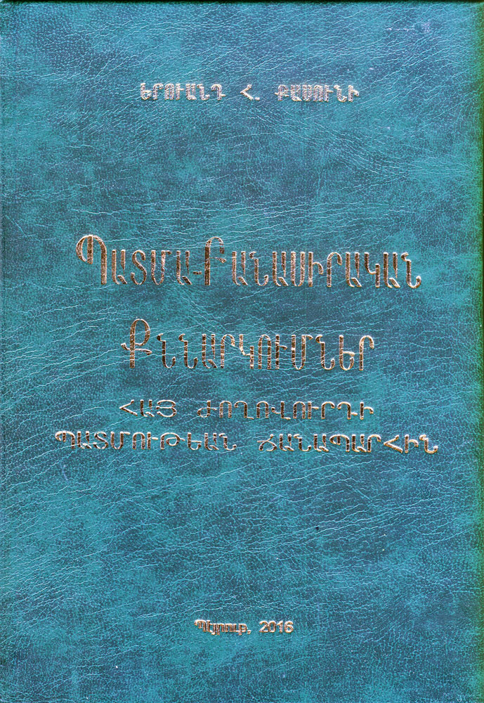 Յառաջաբանին մէջ հեղինակը կ՛ըսէ, որ պատմա-բանասիրական քննարկումներու այս հատորը բերքահաւաքի փորձ մըն է` անցնող տասնամեակներու գիտահետազօտական իր աշխատասիրութիւններուն: