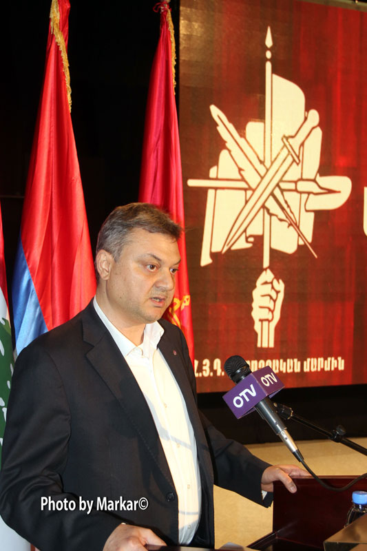 ՀՅԴ Լիբանանի Կեդրոնական կոմիտէի խօսքը արտասանեց Շահան Գանտահարեան: Ան խօսքին սկիզբը ըսաւ, որ ապրիլեան պատերազմի փոխանցած ուղերձները, պատահածին հետեւանքները եւ քաղելիք դասերը վերլուծելը կ՛ենթադրէ տարբեր ուղղութիւններու վրայ լուսարձակի տակ առնել թէ՛ նախաապրիլեան ժամանակահատուածը, թէ՛ քառօրեայ պատերազմը եւ թէ՛ մանաւանդ անոր հետեւող ժամանակահատուածը մէկ տարուան կտրուածքով: Շահան Գանտահարեան յայտնեց, թէ ինչպէ՛ս ռազմական առումով հայկական կողմի մարտունակ գերակայութիւնը եւ ազրպէյճանական զինեալ ուժերուն մօտ սեփական հայրենիքի համար պայքարելու համոզումի բացակայութիւնը ազդած էին Պաքուի ռազմական հաշուարկներուն վրայ, եւ Պաքուն չէր յաջողած լուծել իր առջեւ դրած ռազմական խնդիրները: Ան դիտել տուաւ, որ ապրիլեան պատերազմի բերումով ստեղծուած համազգային համախմբման ալիքի բարձրացման իրականութենէն ետք, հարցականի տակ առնել պաշտպանական համակարգերու պաշտօնական հաղորդագրութիւններով յայտարարուած տեղեկատուութիւնը. ոչ միայն ճիշդ չէ, այլ նաեւ վնասակար է ազրպէյճանական յառաջխաղացքի կասեցումի հայկական յաղթանակը խնդրոյ առարկայ դարձնելով աճապարանքով խօսիլ կորուստներու, թոյլ կէտերու, բանակին մէջ շահագործման երեւոյթներու մասին: