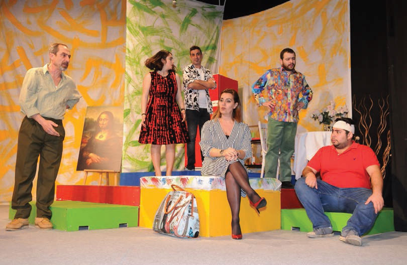 Ոչ կատարողական.– Բեմայարդարումը ե՛ւ աչքառու էր ե՛ւ իմաստալից: Գործածուած էին այն գոյները, որ կեղծ քննիչը նշած էր իր կեղծ զեկոյցին մէջ` կարմիր, կանաչ, դեղին եւ քիչ մը կապոյտ: Սառնարանը դրուած էր բեմի աջակողմեան (Աւելի ուժեղ) դասին մէջ, եռաստիճան բրգաձեւ պատուանդանի մը վրայ: Բարի՛: Մոնա Լիզա նստած էր նկարչական եռոտանիի վրայ` հաւանաբար գործնական նկատառումով: Ոչի՛նչ: Բայց Մոնա Քիզան խծբծուած էր, վիզէն կախ էր հիփփիներու զինանշանը: Այդ կարելի չէ անտեսել: Ասիկա կ’առնչուի այլ հարցի մը. ինչո՞ւ փողոցի եւ բաղնիքի դռները միանման էին: Այդ եւս կարելի չէ անտեսել: Ինչպէ՞ս մեկնաբանել: Երաժշտութիւնը յարիր էր, բայց կը մնար օժանդակ: Ատիկա հաւանաբար դիտումնաւոր էր: Բարի՛: Ընտրուած էր Ռեյնքարնեյշըն (վերամարմնաւորում) խումբի «Էլի լաւ ա» հեգնական երգը, ինչպէս եւ այլ խորապատկերային մեղեդիներ: Բարի՛: Լուսաւորումը դեր չունէր: Ասիկա սովորական է թեթեւ կատակերգութիւններու պարագային: