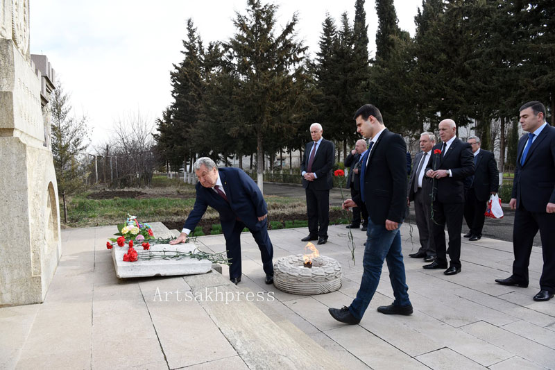 Ազգային ժողովի նախագահ Աշոտ Ղուլեան, կրթութեան, գիտութեան եւ մարմնամարզանքի նախարար Սլավա Ասրեան, Արցախի պետական համալսարանի նախագահ Մանուշ Մինասեան, Երեւանի պետական համալսարանի նախագահ Արամ Սիմոնեանի գլխաւորած պատուիրակութիւնը եւ համալսարանականներ ծաղիկներ զետեղած են արցախեան ազատամարտի ընթացքին համալսարանէն զոհուած ուսանողներուն յիշատակը յաւերժացնող յուշաքարին: