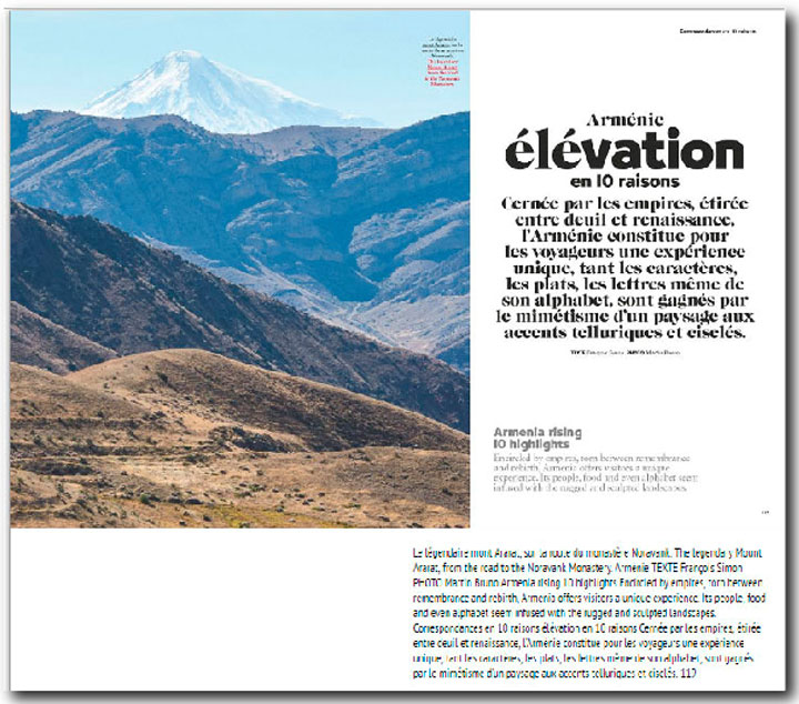 «Էր Ֆրանս» օդանաւային ընկերութեան պաշտօնական ամսագիրի անցեալ տարուան դեկտեմբեր ամսուան թիւին մէջ անդրադարձ կատարուած է Հայաստանը զբօսաշրջիկներու համար գրաւիչ դարձնող 10 պատճառներու:
