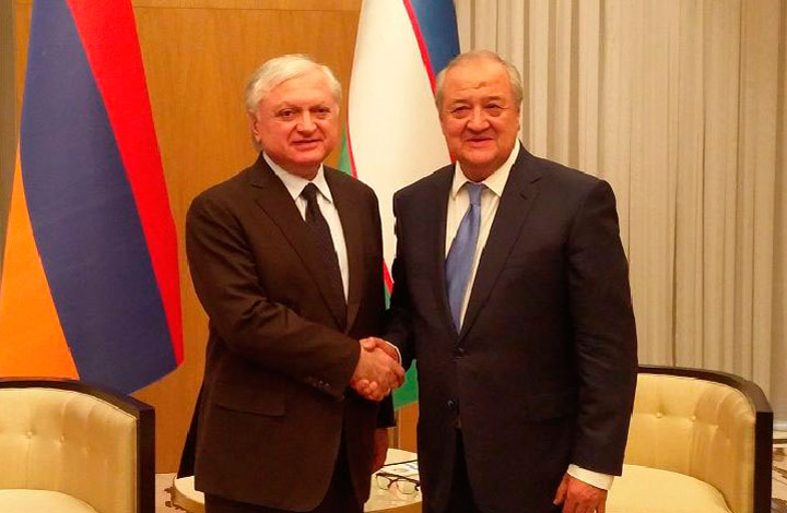 7 ապրիլին աշխատանքային այցելութեամբ Թաշքենտ գտնուող Հայաստանի արտաքին գործոց նախարար Էդուարդ Նալբանդեան հանդիպում ունեցաւ Ուզպեքիստանի իր գործընկերոջ` Ապտուլազիզ Քամիլովի հետ: