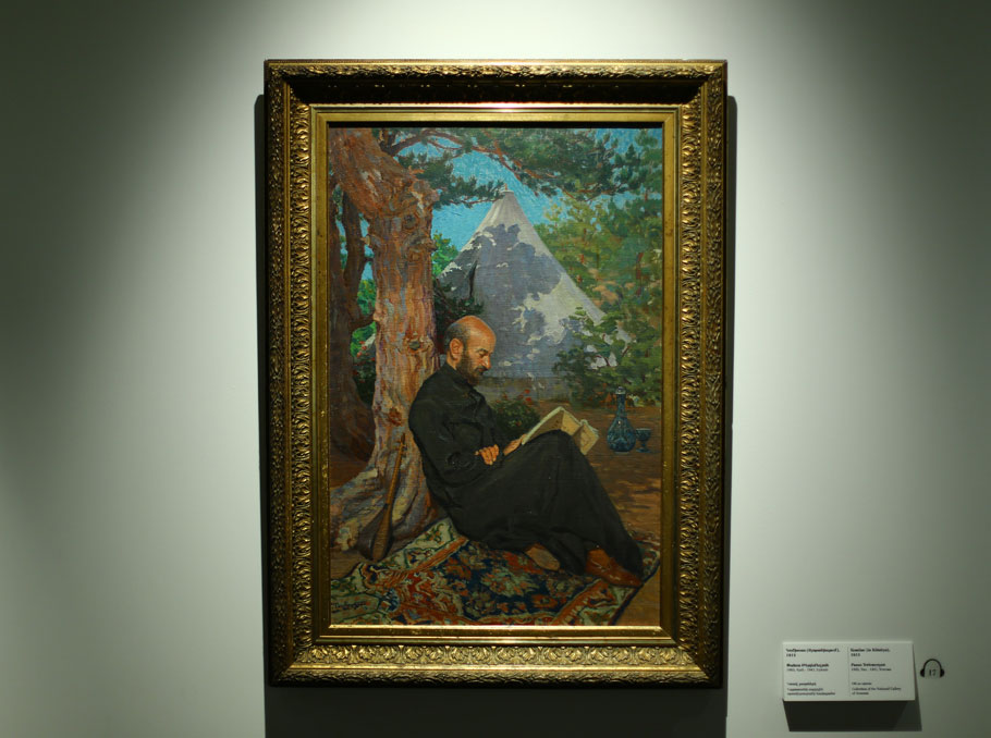 Կոմիտասի թանգարան-հիմնարկի սրահներէն մէկուն մէջ ցուցադրուած է Փանոս Թերլեմեզեանին կտաւը` Կոմիտասը նստած` իր մօր գորգին վրայ, կողքին` սափորը: