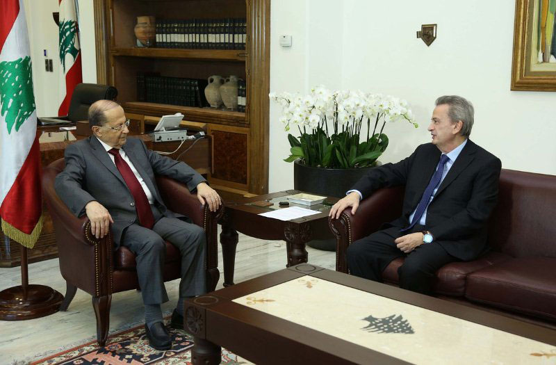 Նախագահ Աունի այցելեց նաեւ Կեդրոնական դրամատան կառավարիչ Ռիատ Սալամէ, որ հանրապետութեան նախագահին հետ քննարկեց երկրին ելեւմտական հարցերը, ինչպէս նաեւ լիբանանեան թղթոսկին կայուն պահելու կարողութիւնները: