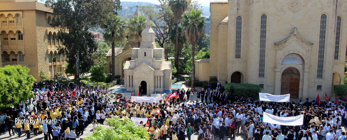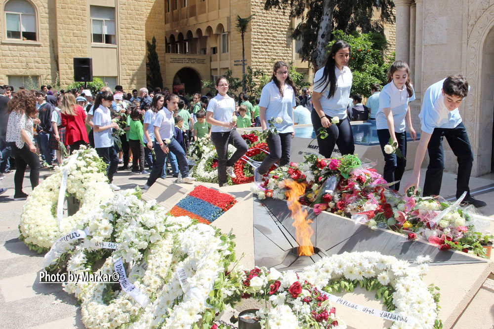 Լիբանանի հայոց թեմի առաջնորդ Շահէ եպս. Փանոսեան աշակերտներուն ուղղուած իր խօսքին մէջ ըսաւ, որ ամէն տարուան պէս հաւաքուած ենք մեր ուխտը նորոգելու մեր պատմութեան նկատմամբ եւ անդրադառնալու, որ նախորդ սերունդներուն օրինակով մենք ալ պարտականութիւն ունինք կատարելիք ապագայի հաշուոյն: Սրբազան հայրը նկատել տուաւ, որ այնքան ատեն որ մեր դատը չէ ճանչցուած աշխարհին կողմէ, ջարդարար Թուրքիան չէ ընդունած իր կատարած արարքը եւ չէ հատուցած մեզի, մենք պարտաւոր ենք գործել, որպէսզի մեր ժողովուրդին արդար դատը ճանաչում գտնէ եւ անիկա հատուցում ստանայ իր ունեցած բոլոր կորուստներուն համար: Առաջնորդ սրբազանը կոչ ուղղեց աշակերտներուն, որ ուխտեն տէր կանգնիլ հայոց պատմութեան, հետապնդեն մեր նահատակներուն վրէժը եւ մեր անժամանցելի իրաւունքներուն ի խնդիր իրենց կեանքը ընծայեն ազգին: