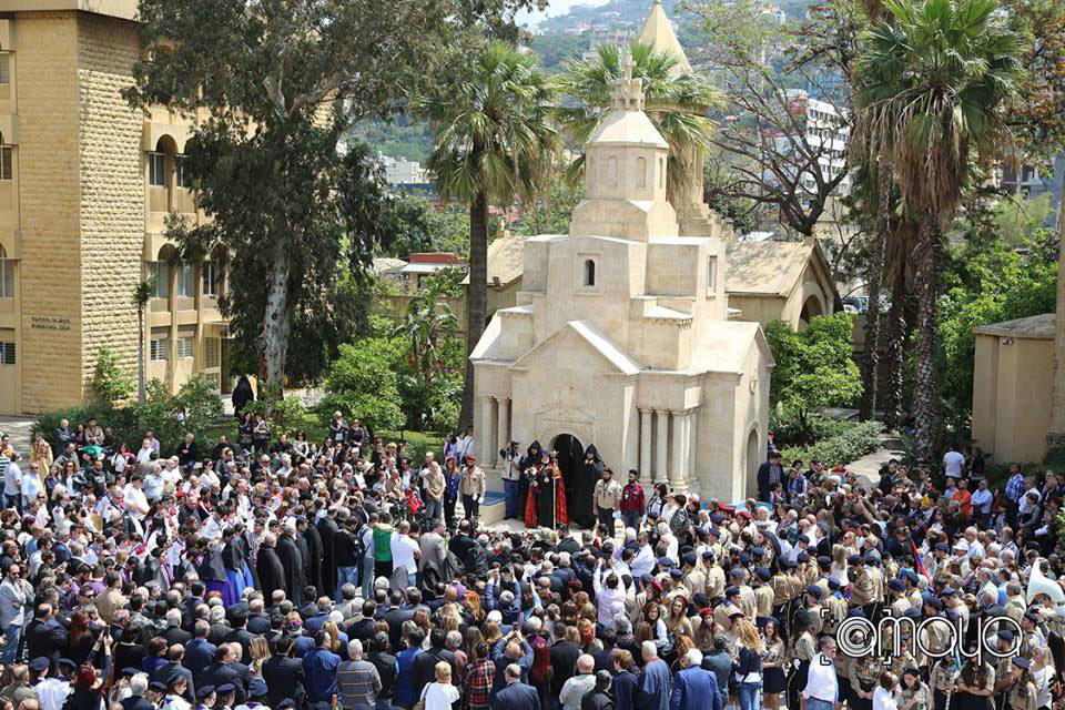 Յաւարտ Ս. պատարագին, նախագահութեամբ Արամ Ա. վեհափառ հայրապետին, հայրապետական թափօրը ուղղուեցաւ դէպի Ապրիլեան Սուրբ նահատակներու յիշատակին կանգնեցուած աշխարհի առաջին յուշակոթողին դիմաց` բարձրացնելու հայու պահանջատէր ձայնը: Հաւաքին ներկայ գտնուեցան նաեւ պետական նախարարներ ու երեսփոխաններ, Լիբանանի հայկական երեք կուսակցութիւններ եւ հայ թէ օտար տարբեր միութիւններու ու կազմակերպութիւններու ներկայացուցիչներ:
