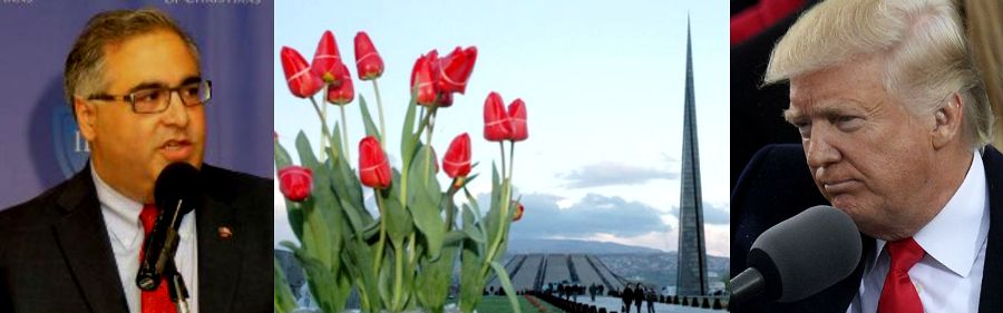 Ուաշինկթընի Հայ դատի գրասենեակի գործադիր տնօրէն Արամ Համբարեան քննադատեց այն փաստը, որ Միացեալ Նահանգներու նախագահ Տանըլտ Թրամփ իր ապրիլ քսանչորսեան ուղերձին մէջ խուսափած է ցեղասպանութիւն սահմանումը օգտագործելէ: