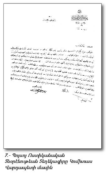 Յիշեալ անձին տրուած արտօնութեան մասին Ապահովութեան քննչական տնօրէնութեան տեղեկութիւն տրուելու համար սոյն գրութիւնը Արտասահմանի երթեւեկութեան տնօրէնութեան կը ներկայացուի: