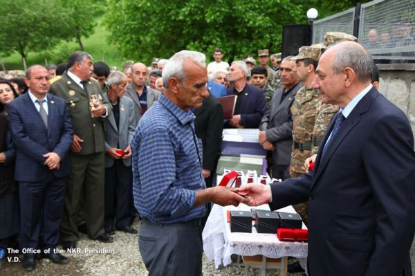 Հայրենիքի պաշտպանութեան համար մղուած մարտերու ընթացքին ցուցաբերած արիութեան ու խիզախութեան համար եւ Յաղթանակի տօնին, Լեռնային Ղարաբաղի Հանրապետութեան Պաշտպանութեան բանակի կազմաւորման ու Շուշիի ազատագրման 25-ամեակին առիթով, նախագահ Սահակեան պետական բարձր պարգեւներ յանձնած է խումբ մը ազատամարտիկներու: