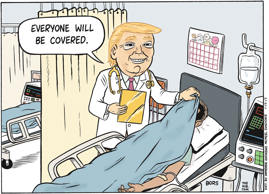 – Տե՛ս. մարդը որոշեր է կրճատել հսկայական եկամուտ ունեցող ընկերութեանց ու մարդոց շահատուրքերը, իբր թէ քաղաքացիներուն տուրքերն ալ տանելի դարձնելու խոստումով, որ գործնապէս սահմանուած է թուղթի վրայ պահուելու: Պետական ու նիւթական լայն հնարաւորութիւններ ունեցող մարդոց ապահովագրութիւն կը տրամադրէ (իբրեւ յաւելում անցեալի մենաշնորհներուն)` ի հեճուկս սահմանափակ եկամուտով զանգուածին: Մեքսիքացիները ոճրագործ ու մաքսանենգ հռչակելը չէ՞ր բաւեր… Հիմա Մեքսիքայի սահմանին վրայ պատ կառուցելու ծրագիրը սառեցուցած է, բայց չէ հրաժարած, ու եթէ իր պահանջին համաձայն, Մեքսիքա չվճարէ անոր գինը (Մեքսիքայի մէջ կարծես թէ աւելի խելացի մարդիկ կան), այդ ալ պիտի բարդէ մեր շահատուրքերուն վրայ: