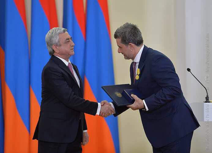 Մայիսեան յաղթանակներուն, Հայաստանի հանրապետութեան 99-ամեակին եւ Հանրապետութեան տօնին առիթով մայիս 28-ին, նախագահի նստավայրին մէջ տեղի ունեցած է պետական բարձրագոյն պարգեւներու յանձնում.տարբեր ծաայութիւններու տարբեր աստիճանի պարգեւներու առընթեր, Հայրենիք- սփիւռք կապերու խորացման եւ ընդլայնման գործին իրենց բերած նպաստին համար երախտագիտութեան շքանշան ստացած են Լիբանանէն Բիւզանդ Գէորգեան, Քուէյթէն Յարութ Պէտիրեան, Սուրիայէն Արթին Վարդանեան. Մովսէս Խորենացի շքանշան` Իրանէն Դերենիկ Մելիքեան, եւ Հայաստան Հիմնադրամի 25-ամեակի մետալ՝ Լիբանանէն Նազարէթ Սապունճեան։