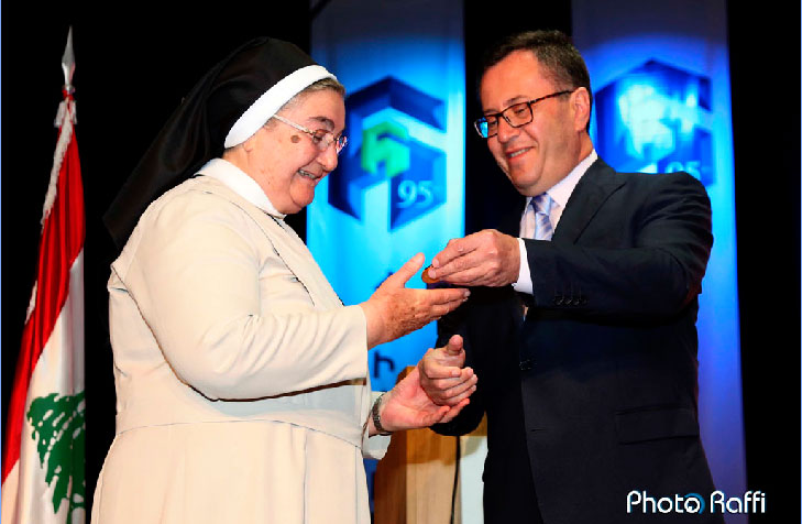 Հովանաւորութեամբ Լիբանանի կրթութեան եւ բարձրագոյն ուսման նախարար Մարուան Համատէի, նախագահութեամբ Հայ կաթողիկէ Գրիգոր-Պետրոս Ի. կաթողիկոս-պատրիարքին, ուրբաթ, 26 մայիս 2017-ի երեկոյեան ժամը 8:30-ին «Էմիլ Լահուտ» հանդիսասրահին մէջ տեղի ունեցաւ Սրբոց Հռիփսիմեանց բարձրագոյն վարժարանի 95-ամեակին նուիրուած փառաշուք հանդիսութիւն` ներկայութեամբ հոգեւոր տիրոջ, Մեծի Տանն Կիլիկիոյ Արամ Ա. կաթողիկոսի ներկայացուցիչ` Լիբանանի հայոց թեմի առաջնորդ Շահէ եպս. Փանոսեանի, Մերձաւոր Արեւելքի Հայ աւետարանական եկեղեցիներու միութեան Կեդրոնական մարմինի ատենապետ վեր. դոկտ. Փոլ Հայտոսթեանի, Լիբանանի մէջ պապական նուիրակ Կապրիէլ Քաչիա եպիսկոպոսին, Լիբանանի եւ Հայաստանի սփիւռքի նախարարութիւններէն ներկայացուցիչներու, Լիբանանի մէջ Հայաստանի դեսպան Սամուէլ Մկրտչեանի, ՀՅԴ Լիբանանի Կեդրոնական կոմիտէի ներկայացուցիչ, երեսփոխան Յակոբ Բագրատունիի, երեսփոխաններու, նախկին նախարարներ, պատկան մարմիններու, միութիւններու ներկայացուցիչներու եւ մեծ թիւով հիւրերու: