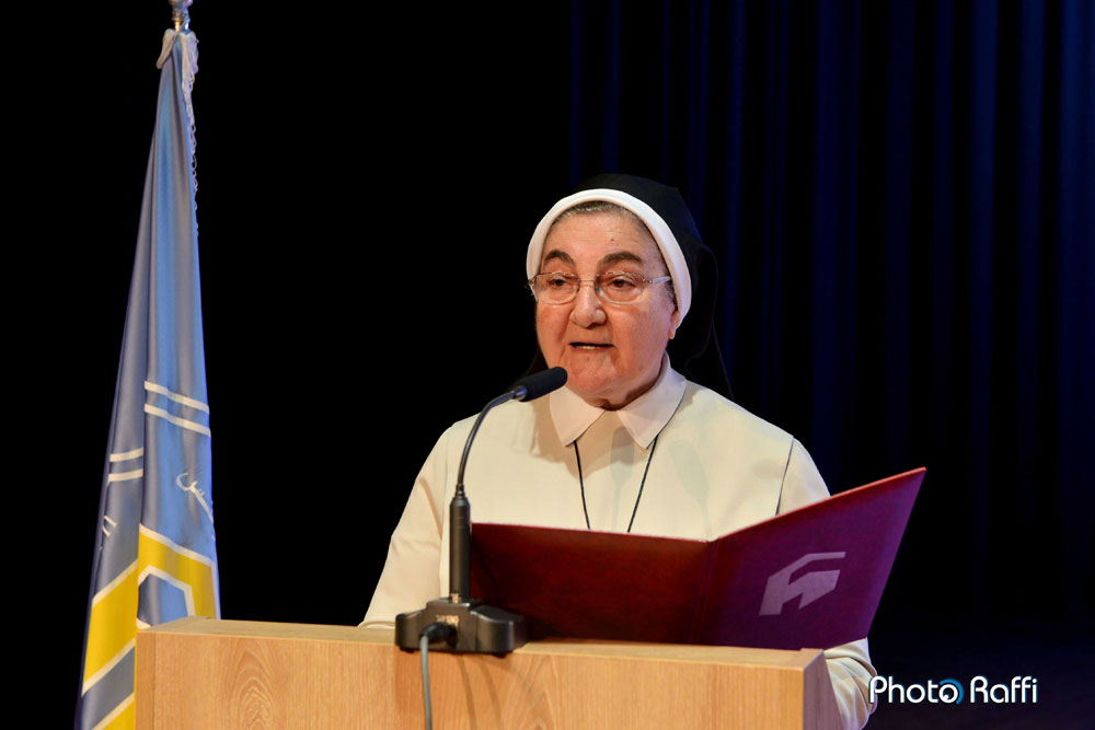 Ապա քոյր Արմինէ Մակարոսեան վկայակոչեց Հայոց ցեղասպանութենէն անտուն, ծարաւ եւ անմխիթար վիճակի մէջ Լիբանան հասած կիներուն, երեխաներուն, ծերերուն պայքարը` արդարութեան փնտռտուքի ի խնդիր: Անոր համաձայն, այդ սերունդը ապաստան գտաւ միջինարեւելեան այս երկրին մէջ, որ երկրորդ հայրենիք եղաւ հայութեան համար, որ միշտ ալ հաւատարիմ մնաց իր հայրենիքին: Հայկական եւ լիբանանեան սկզբունքներու միախառնումով կը պատրաստուինք դէպի 100-ամեակ ուղղուելու, շեշտեց Հռիփսիմեանցի տնօրէնը` աւելցնելով, որ երկու պատկանելիութիւնները լիբանանահայը կը դարձնէ աւելի զօրաւոր, աւելի վճռական` շարունակելու իր առաքելութիւնը եւ հաստատակամօրէն անմար ճրագը, սիրոյ սկզբունքներով յագեցած, կը բոցավառէ յառաջիկայ սերունդներուն մէջ: