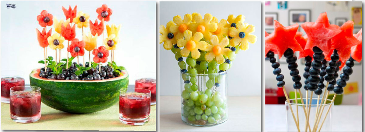 Այս յարդարանքները իրագործելու համար պէտք ունիք ձմերուկի, անանասի, խաղողի եւ այլն… ճիշդ է, որ հիմա խաղողի եղանակը չէ, բայց կարելի է խաղողի հատիկները փոխարինել սեխի գնդիկներով: