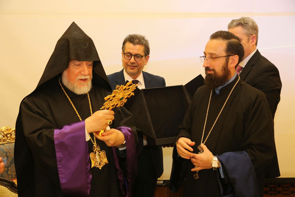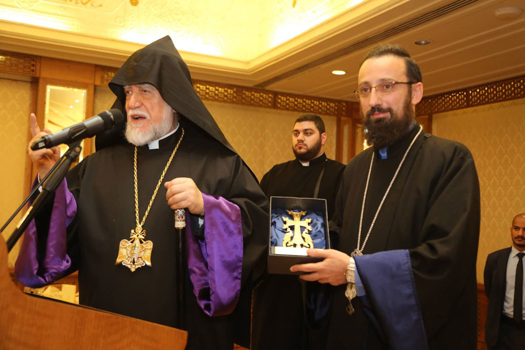 Անդրադառնալով միջազգային բեմերու վրայ վեհափառ հայրապետին վարած լայնածաւալ գործունէութեան` ըսաւ. «Դուք յարաբերութիւններու հսկայ շրջագիծ մը ստեղծեցիք եկեղեցական, քաղաքական շրջանակներու ու ղեկավարներու հետ: Կիլիկիոյ կաթողիկոսութիւնը ախոյեանը դարձուցիք եկեղեցիներու միութեան շարժումին եւ երկար տարիներ ղեկավարեցիք այդ շարժումը: Ձեր բոլոր ճիգերը ի գործ դրիք Հայաստանի Հանրապետութեան հզօրացման եւ Արցախի հարցին համար: Ախոյեանը եղաք Հայ դատի համար մղուած պայքարին: Քուէյթահայութիւնը այսօր կու գայ վերահաստատելու եւ ամրագրելու իր պատկանելիութիւնն ու ամբողջական հաւատարմութիւնը` Կիլիկիոյ Սուրբ Աթոռին: Այս պատկանելիութիւնը լոկ վարչական կապ մը չէ մեզի համար, այլ գիտակցութիւն է` պատմութեան եւ ազգային անժամանցելի արժէքներուն, Հայ դատ է, Արեւմտահայաստան է եւ Կիլիկիա է: Մենք բոլորս հպարտ ենք ձեզմով եւ կը մաղթենք ձեզի եւ Մեծի Տանն Կիլիկիոյ կաթողիկոսութեան յարատեւ յաջողութիւններ եւ նուաճումներ: Բոլորս հաւատքի առաքելութեան եւ ծառայութեան ծառաներն ենք` ձեր գլխաւորութեամբ»: