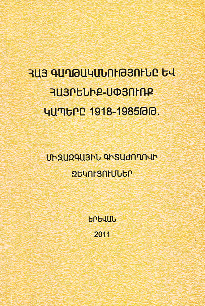 Երեւանի մէջ 2011-ին լոյս տեսաւ «Հայ գաղթականութիւնը եւ հայրենիք-սփիւռք կապերը 1918-1985 թթ. միջազգային գիտաժողովի զեկուցումները» հատորը, բաղկացած` 138 էջերէ: Գիտաժողովը տեղի ունեցած է 8-10 հոկտեմբեր 2010-ին, Ծաղկաձորի մէջ: