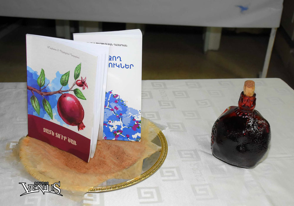 Ապա բեմ հրաւիրուեցաւ սրբազան հայրը, որպէսզի գինիով օծէ նորածին այս երկու գիրքերը: