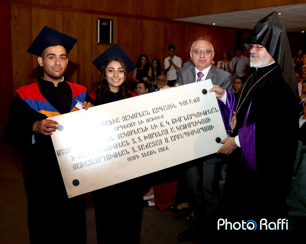 Տնօրէնին խօսքէն ետք տեղի ունեցաւ շրջանաւարտներու վկայականներու տուչութիւն, որմէ ետք խօսք առաւ առաջնորդ Շահէ եպս. Փանոսեանը: Ան ըսաւ, որ` «Հայ դպրոցներուն աշխատանքի ծանրութիւնը մեր ուսերուն առած` հրաժեշտ կու տանք թաղային պայմաններու մէջ գործող մեր վարժարաններուն, որպէսզի լիբանանահայ կեանքին մէջ շահուած հայեցի կրթութեան փորձառութիւնը տանինք դէպի զարգացման նոր փուլ: Այդ տեղի կ’ունենայ, որովհետեւ անցեալի աւանդը պահելու համար անհրաժեշտ է, որ զայն մեր օրուան պայմաններով նորոգենք, որպէսզի ան շարունակէ ստեղծագործել եւ կերտել իրական ազգային արժէքներով պատրաստուած այն հայ մարդը, որ այսուհետեւ եւս գիտակցօրէն պիտի շարունակէ հայութեան գոյապայքարը»: