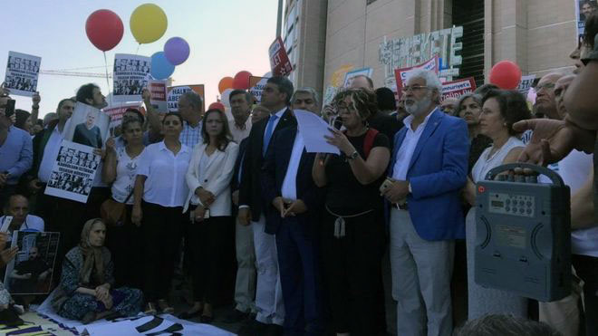 Թրքական ընդդիմադիր «Ճումհուրիյէթ» թերթի 17 լրագրողներու, ինչպէս նաեւ մամլոյ միջազգային գործակալութեանց թղթակիցներու դատավարութիւնը սկիզբ առաւ երէկ Թուրքիոյ մէջ: Արգելափակեալ լրագրողներու հարազատներ եւ բարեկամներ խճողեցին դատարանը, մինչ ուրիշներ փուչիկներ պարզելով պահանջեցին անոնց ազատ արձակումը: Ընդդիմադիր «Ճումհուրիյէթ» թերթի նախկին խմբագրապետ Ճան Տիւնտար այս դատավարութեան արդիւնքը նկատեց սկիզբն ու ցուցանիշը Թուրքիոյ որդեգրելիք