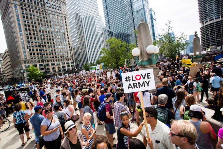 Նիւ Եորքի մէջ բողոքի ցոյց կատարողները քանի մը խումբերով երթով մօտեցած են «Թրամփ Թաուըր»-ին, ուր նստացոյց կատարած են` նախագահին ուղղուած պահանջներով: