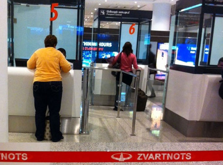 Մեզ ուղարկեցին ԱՎՎ «Զուարթնոց» օ/կ բաժին (ՕՎԻՐ), ուր պարզուեցաւ, թէ իւրաքանչիւրս պէտք է վճարէ 50 հազար դրամ տուգանք (մօտաւորապէս` 110 ամերիկեան տոլար), որովհետեւ ուշացած էինք երկրէն դուրս ելլելու… ընդամէնը 1 օրուան հաշիւով (աւելի ճշգրիտ` քանի մը ժամուան):