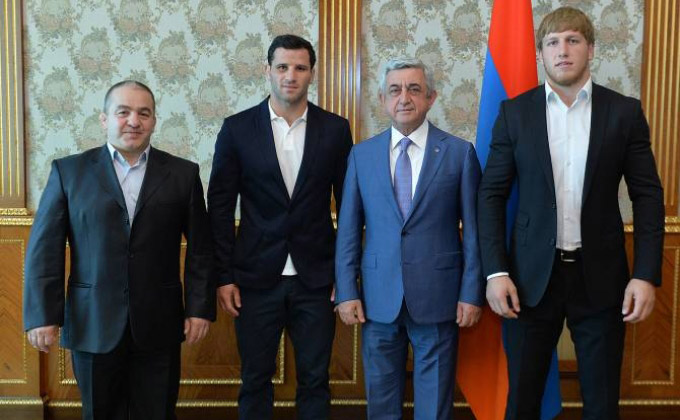 Հայաստանի նախագահ Սերժ Սարգսեան երէկ ընդունեց յունահռոմէական ըմբշամարտի աշխարհի ախոյեանութեան ժամանակ ոսկի մետալներ նուաճած, աշխարհի եւ Եւրոպայի եռակի ախոյեան, ողիմպիական խաղերու պրոնզէ մետալակիր, 2016 թուականի Ամառնային ողիմպիական խաղերու ոսկիէ մետալակիր Արթուր Ալեքսանեանը եւ աշխարհի ախոյեան Մաքսիմ Մանուկեանը: