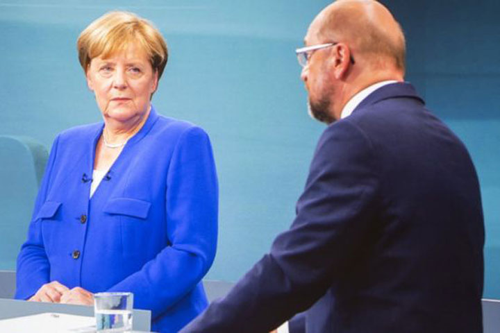 Միւս կողմէ,«Տէօչէ Վելլէ» կը հաղորդէ, որ 3 սեպտեմբերին կայացած պատկերասփռուած բանավէճին ընթացքին յաղթանակ արձանագրած է Մերքելը: Գերմանական «Էյ.Ար.Տի.» պատկերասփիւռի կայանին պատուէրով հանրային կարծիքի ուսումնասիրութեան «Ինֆրաթեսթ-տիմափ» հիմնարկի հարցախոյզը ցոյց տուած է, որ հարցախոյզի մասնակիցներուն 55 առ հարիւրը նախընտրած է Մերքելը, իսկ 35 առ հարիւրը` Շուլցը: