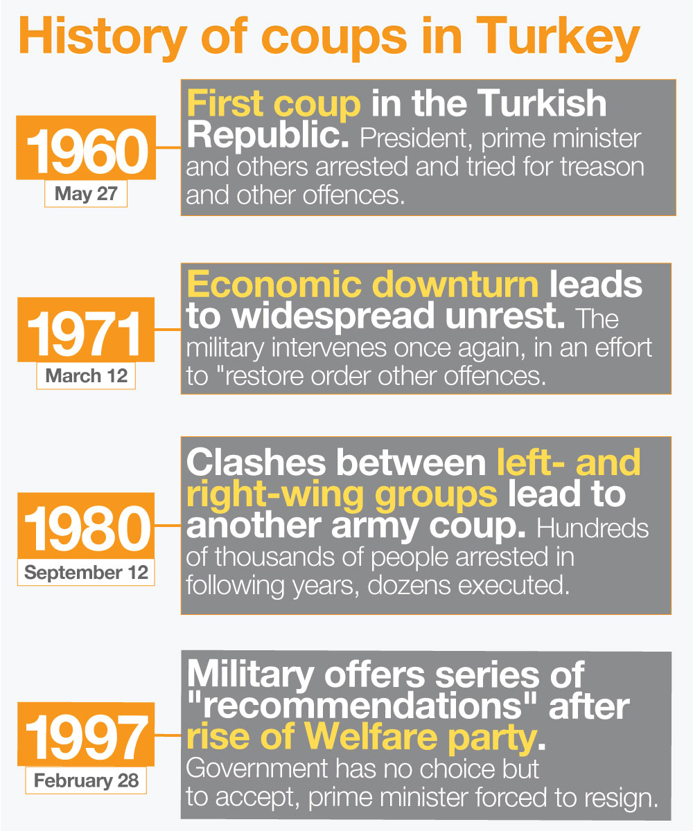 Թրքական բանակը շատոնց ինքզինք նշանակած է իբրեւ «թրքական ժողովրդավարութեան խնամակալ» կամ պահապանը Քեմալ Աթաթուրքի ստեղծած արդիական եւ աշխարհիկ պետութեան: Իբրեւ այդպիսին` անիկա երեք անգամ ուղղակիօրէն միջամտած է թրքական քաղաքականութեան մէջ, իսկ 1997-ին կատարած է «յետարդիական (postmodern) յեղաշրջում» մը: